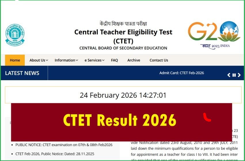 The CTET Result 2026 is expected to be declared 3–4 weeks after the release of the final answer key. As per previous trends, the result may be announced by March 2026.